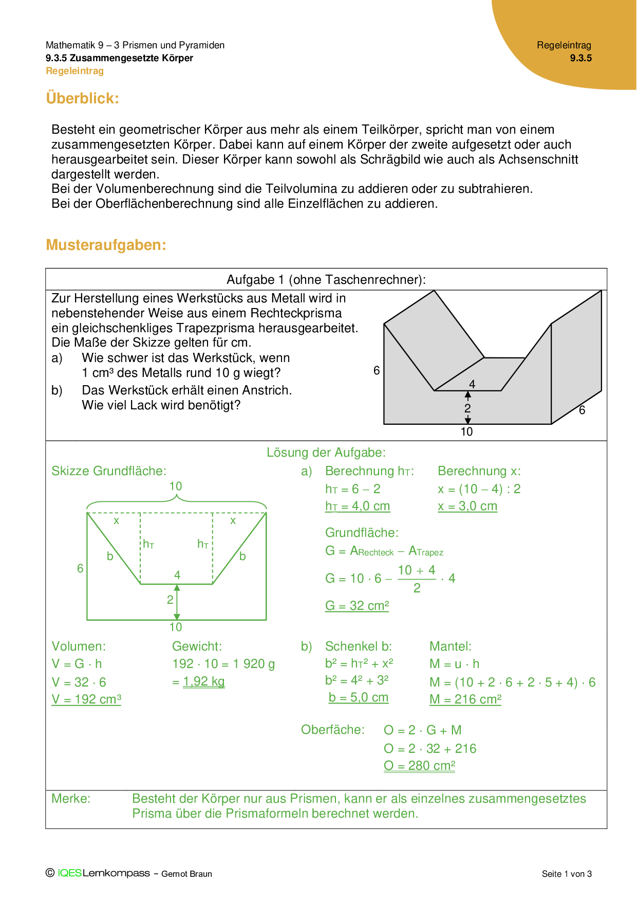 9.3.5 Zusammengesetzte Körper - Übungsaufgaben mit Lösungen