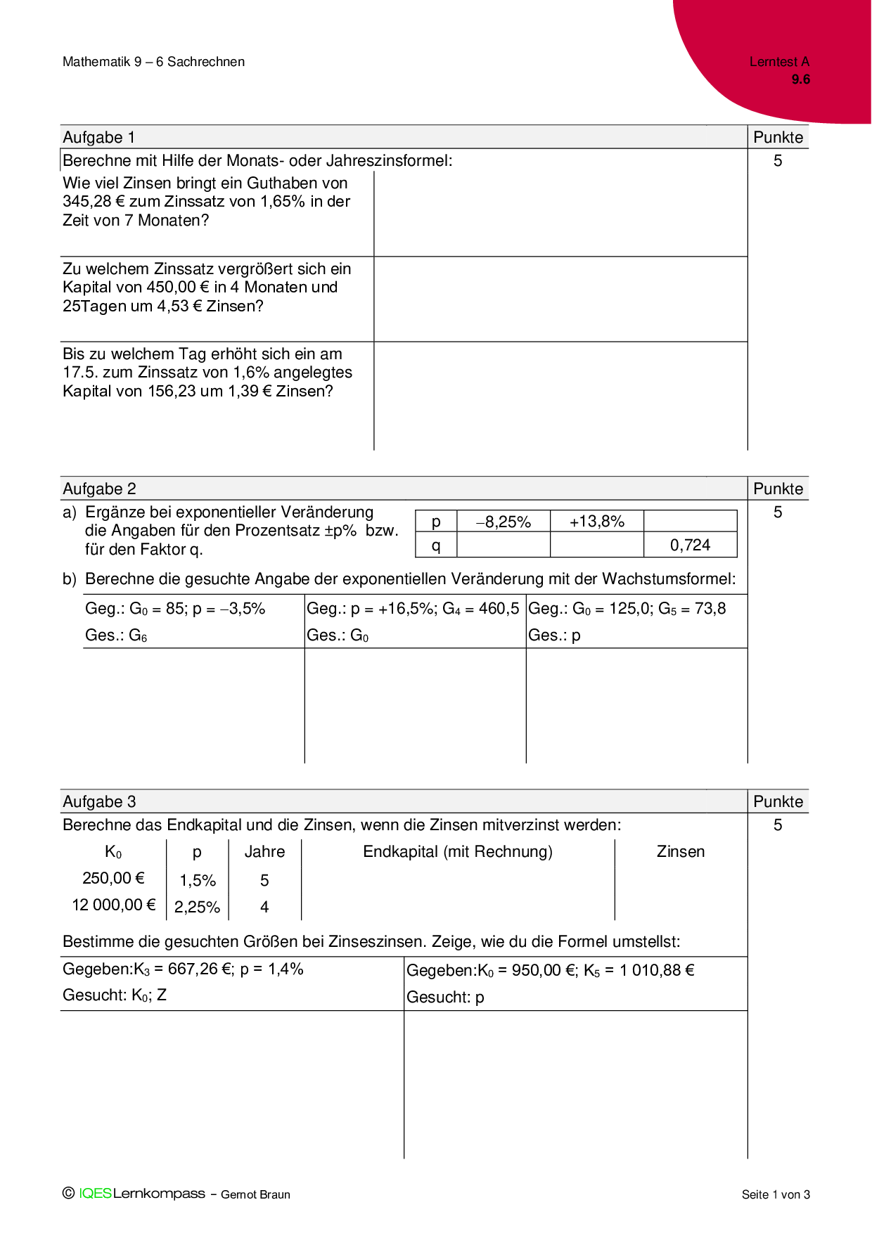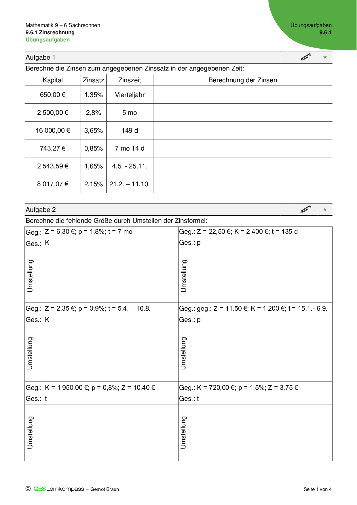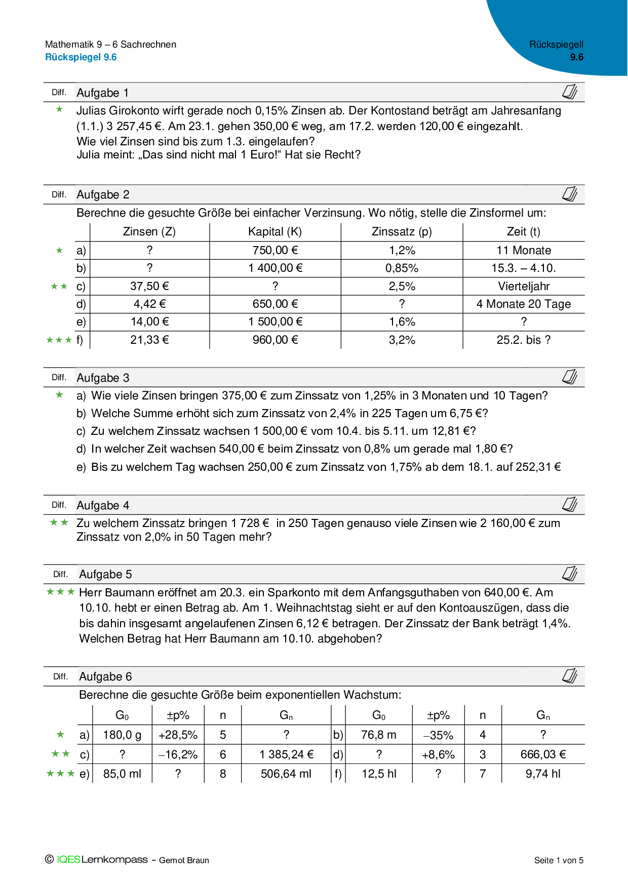 9.6.1 Zinsrechnung - Übungsaufgaben