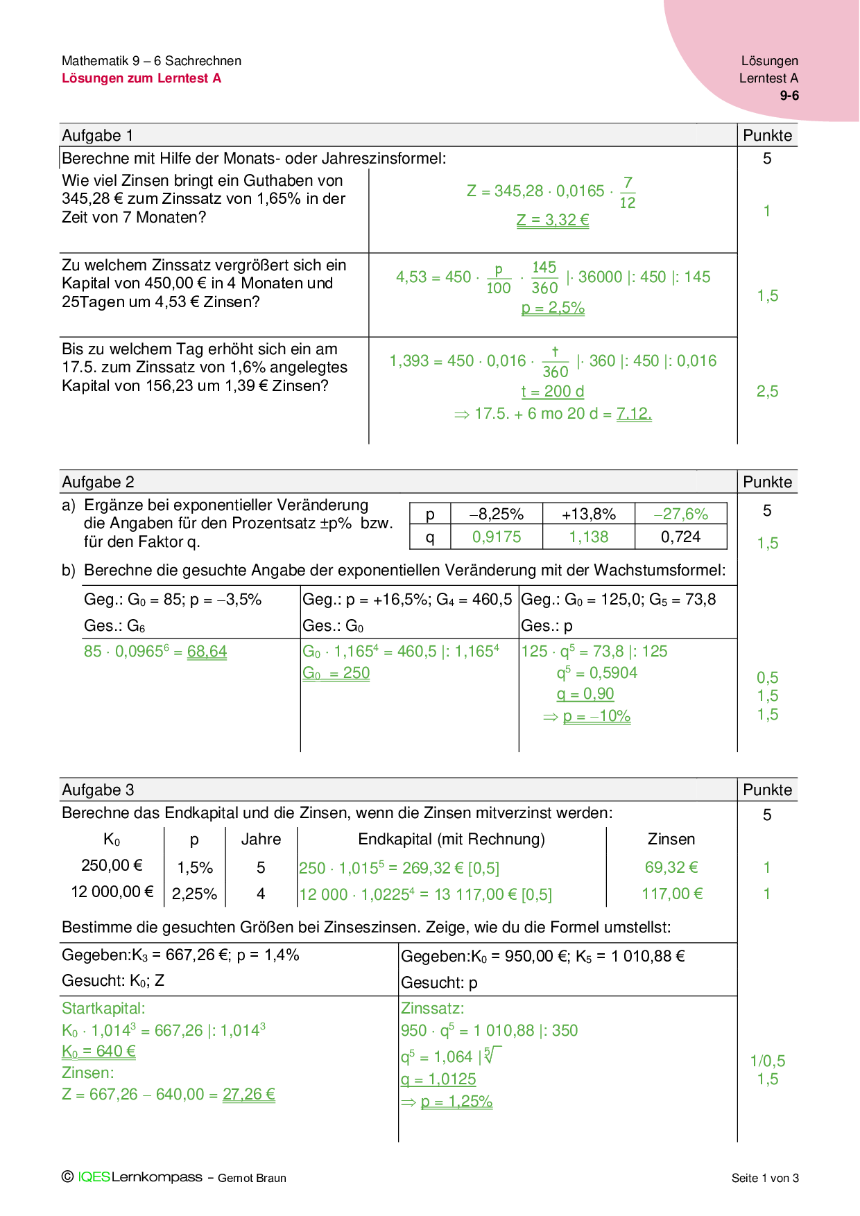 9.6 Sachrechnen - Lösungen zum Lerntest A