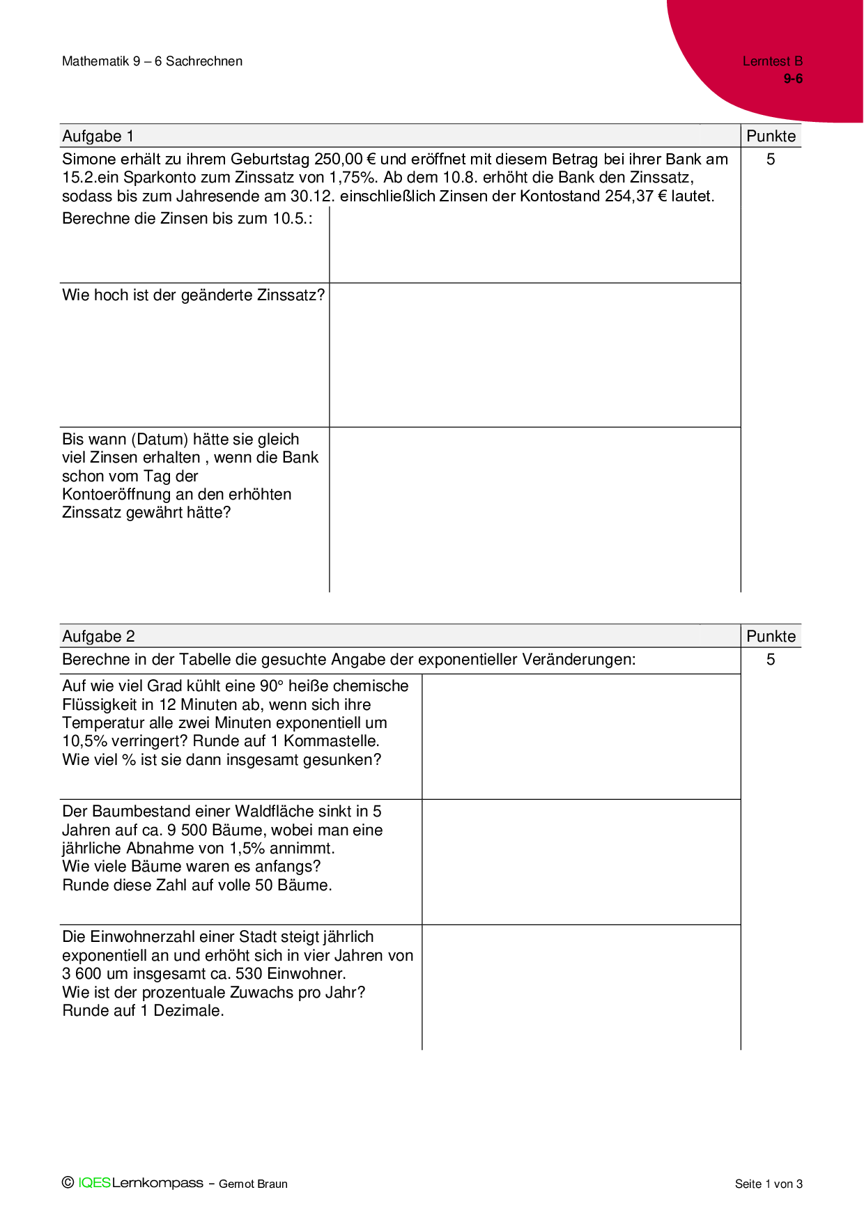9.6 Sachrechnen - Lerntest B