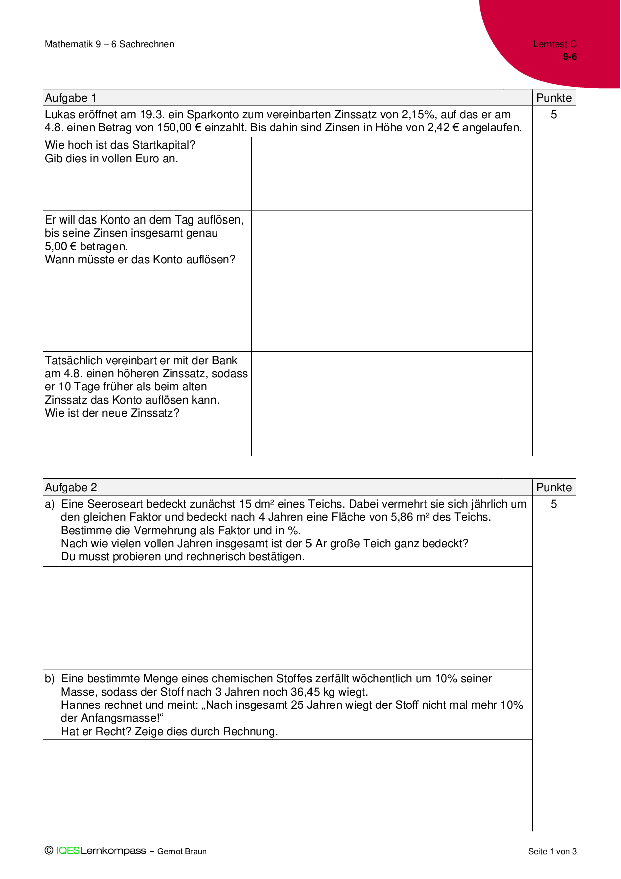 9.6 Sachrechnen - Lerntest C