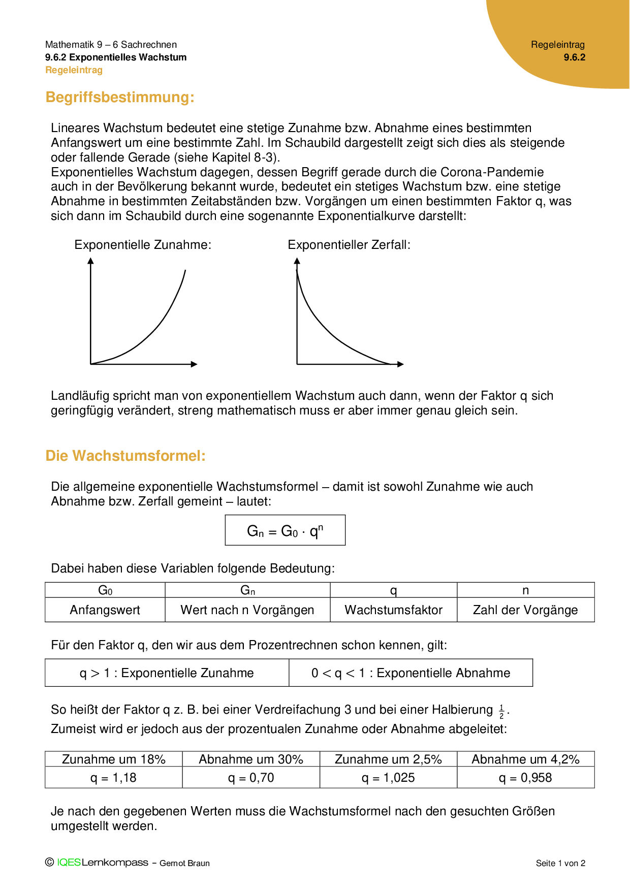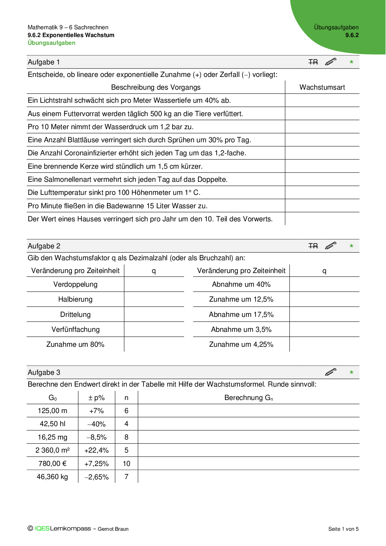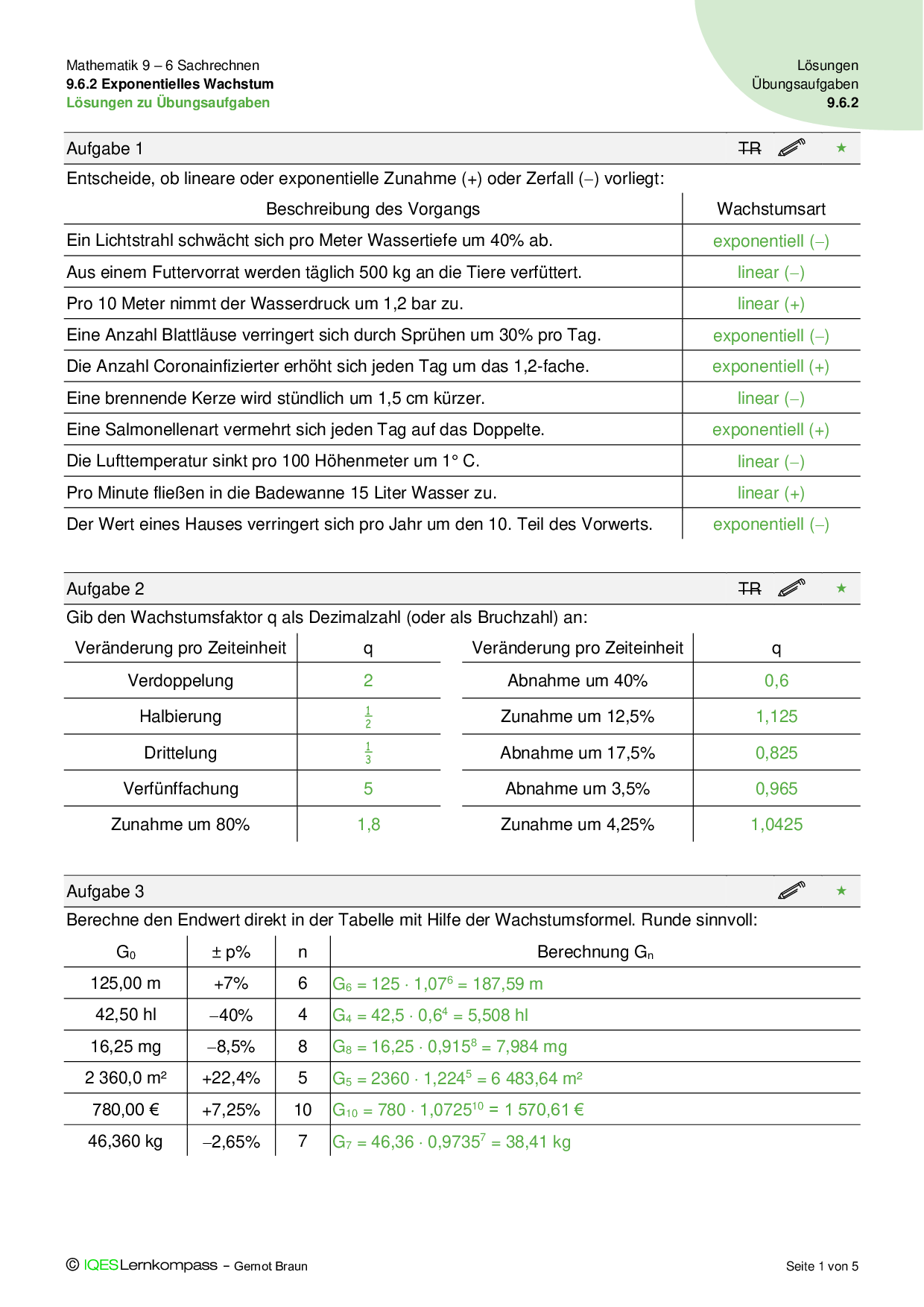 9.6.2 Exponentielles Wachstum - Übungsaufgaben mit Lösungen