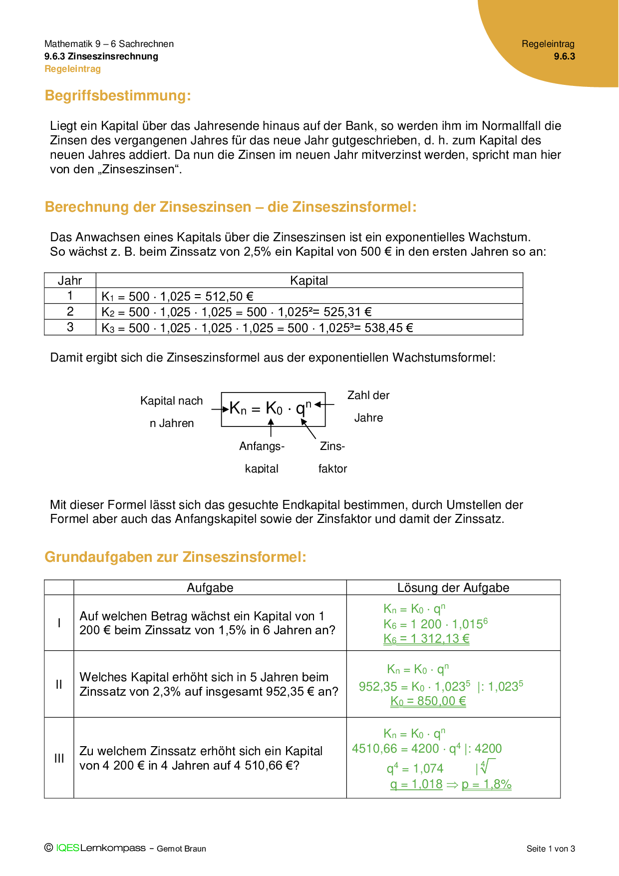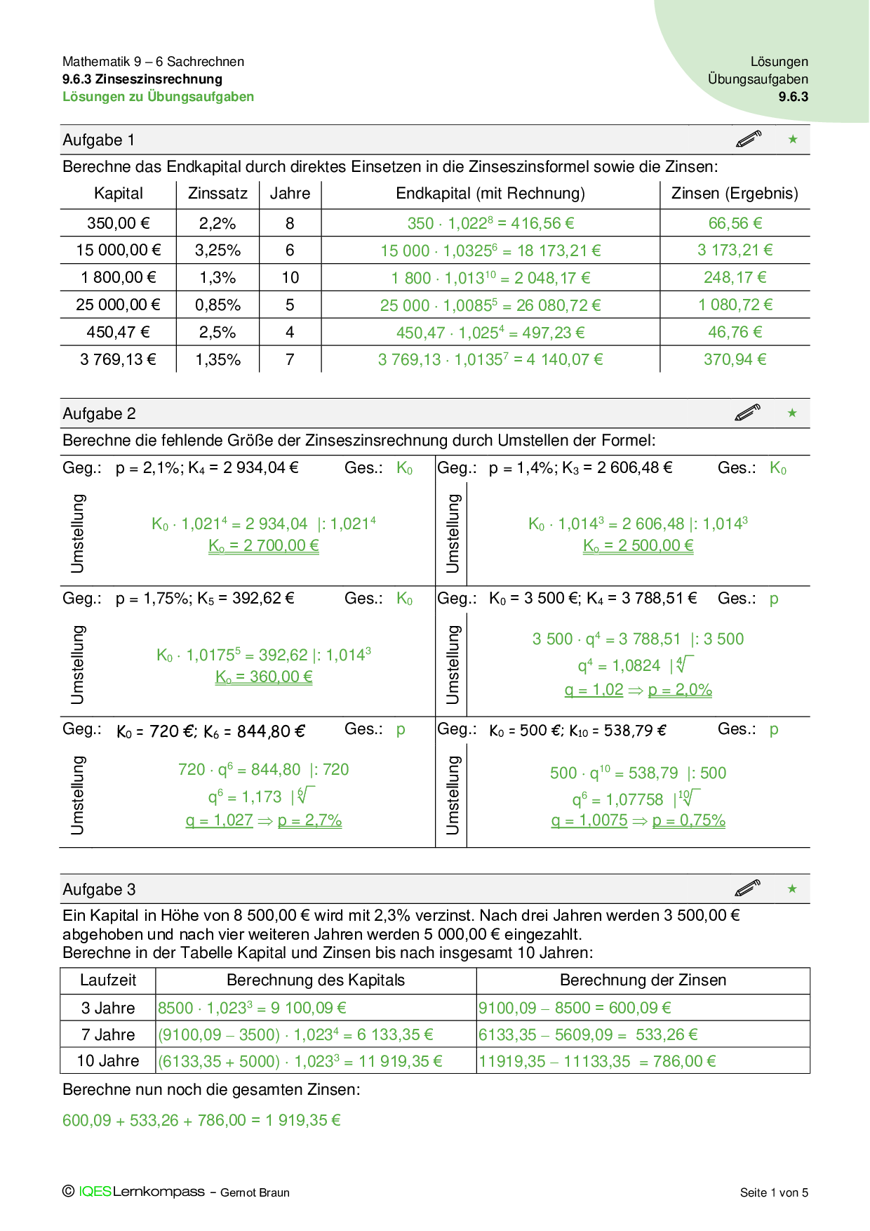 9.6.3 Zinseszinsrechnung - Übungsaufgaben mit Lösungen