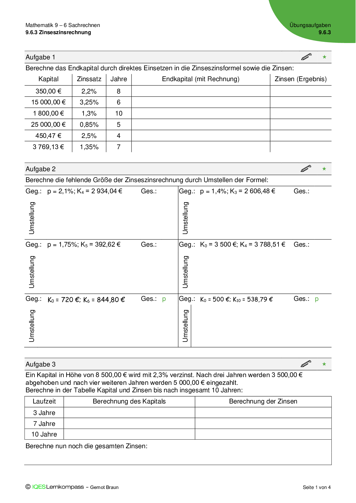 9.6.3 Zinseszinsrechnung - Übungsaufgaben