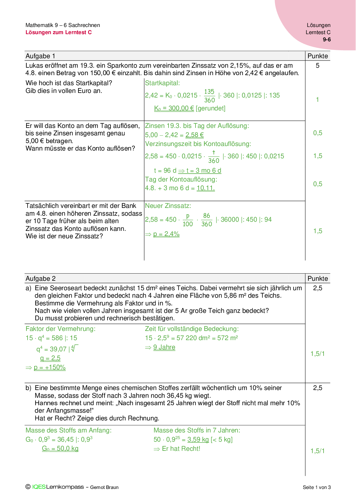 9.6 Sachrechnen - Lösungen zum Lerntest C