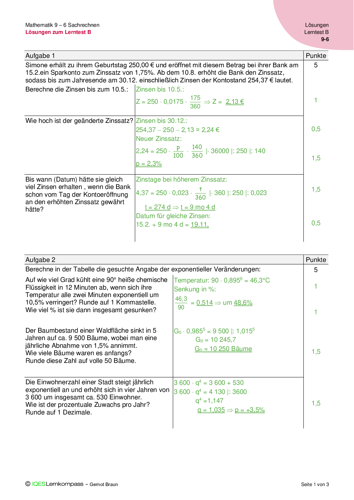 9.6 Sachrechnen - Lösungen zum Lerntest B