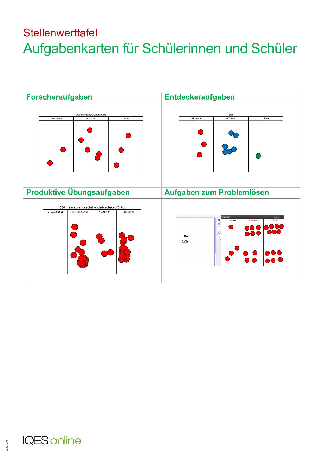 Aufgabenkarten für Schüler/innen: Lernen mit der Stellenwert-App
