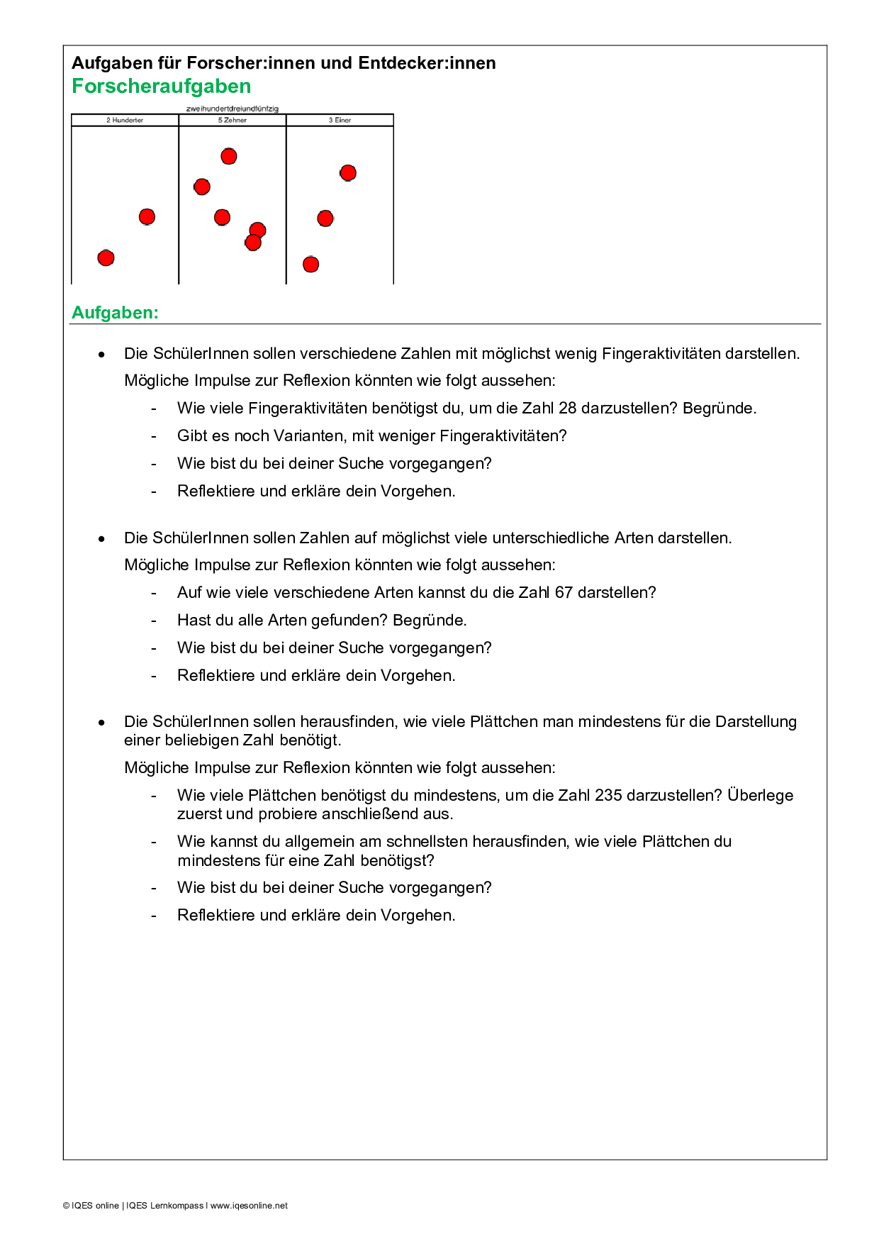 - Zahlbeziehungen und Zahldarstellungen erkennen und beschreiben, um das Stellenwertsystem darzustellen.