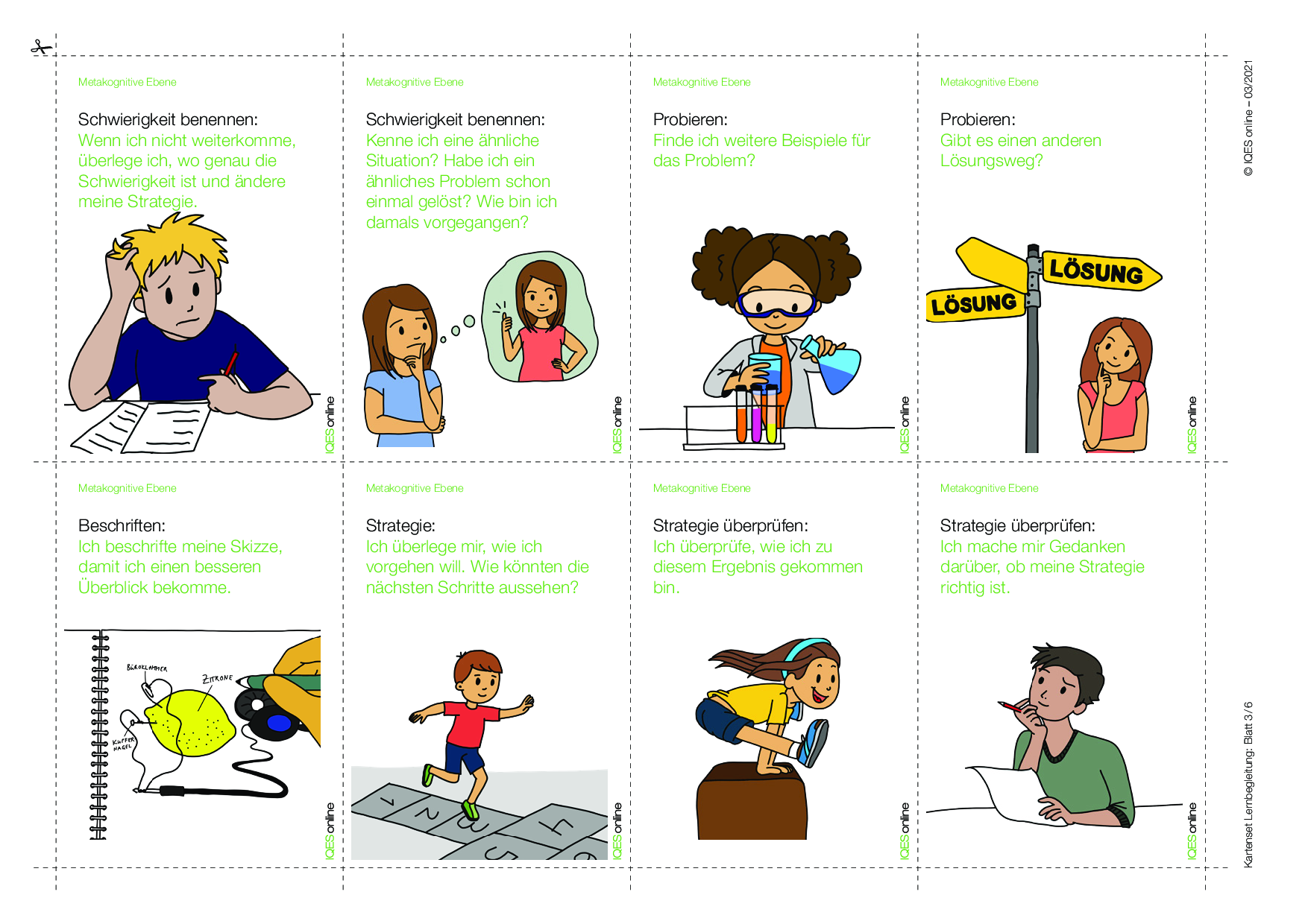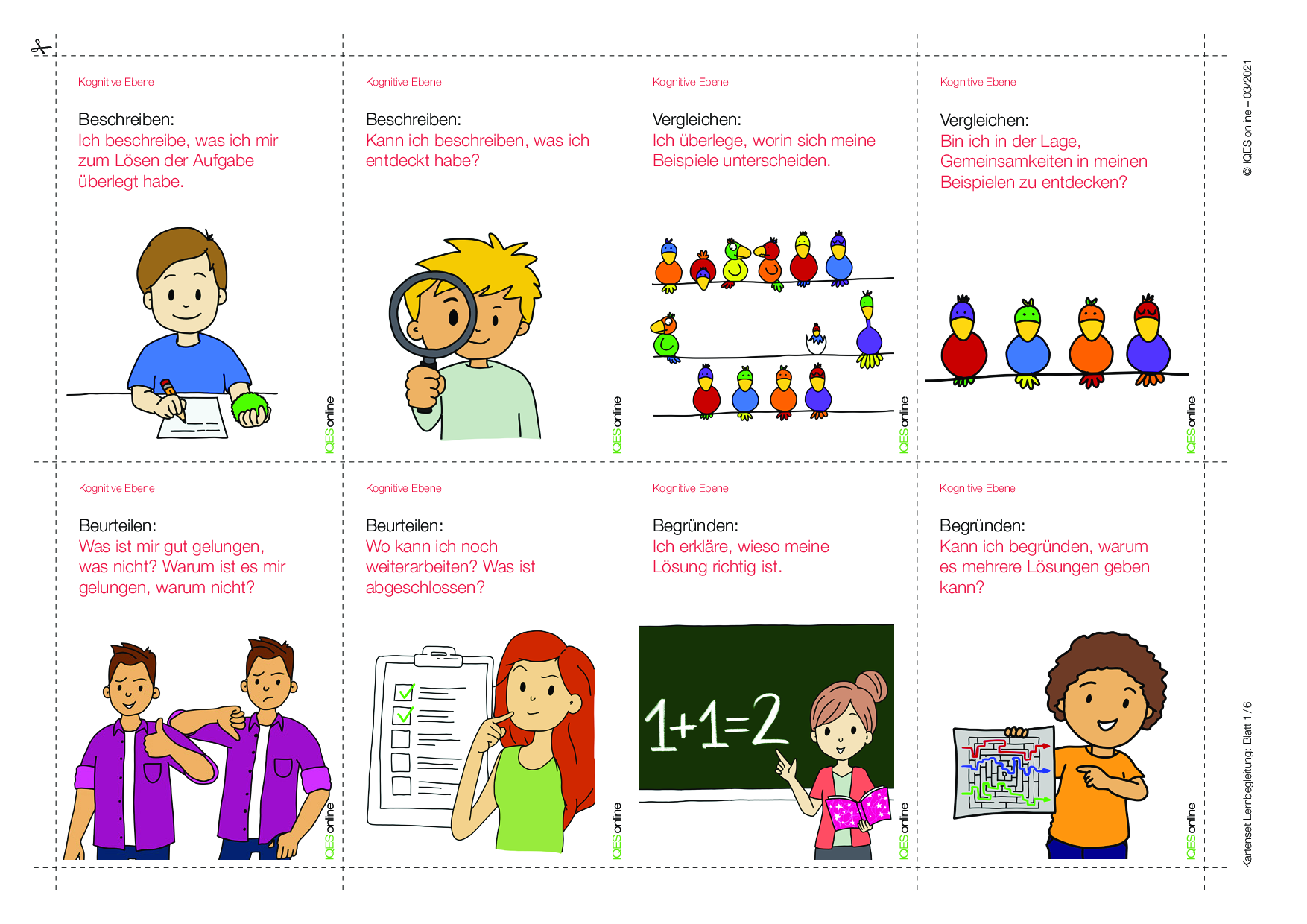 Die Tippkarten für eine individuelle Lernbegleitung ermöglicht sowohl Lehrkräften als auch Lernenden auf der kognitiven, metakognitiven und emotionalen Ebene produktive Lernschritte einzuleiten, indem sie kognitiv aktivierende bzw. strukturierende Impulsfragen an die Lernenden stellen. Lehrkräften und Lernenden erhalten mit einem solchen Lerngerüst die Chance, dass sie in schwierigen Lernphasen von den Lernimpulsen zur (Selbst)Hilfe profitieren können.