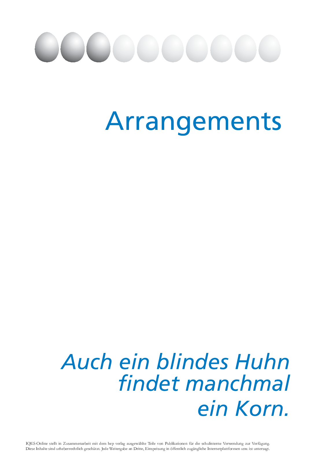 Lernarrangements dienen der Organisation von Komplexität. Es geht darum, für heterogene Gruppen von Lernenden adäquate Settings zu gestalten, in denen zielführendes und selbstwirksames Lernen sich entwickeln kann. Im Prinzip stehen drei Möglichkeiten zur Gestaltung von Lernarrangements zur Verfügung: