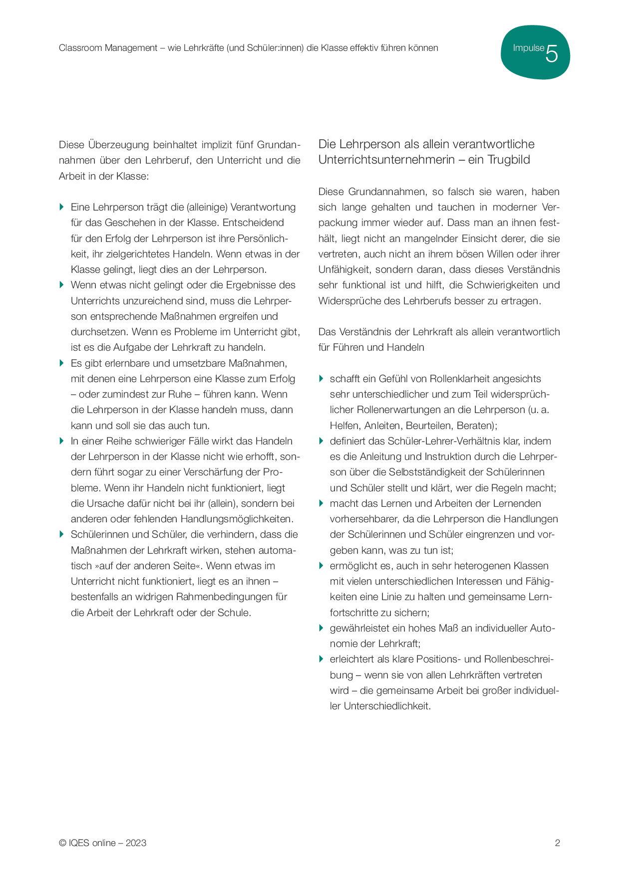 Aus: Impulse für die Schul- und Unterrichtsentwicklung
