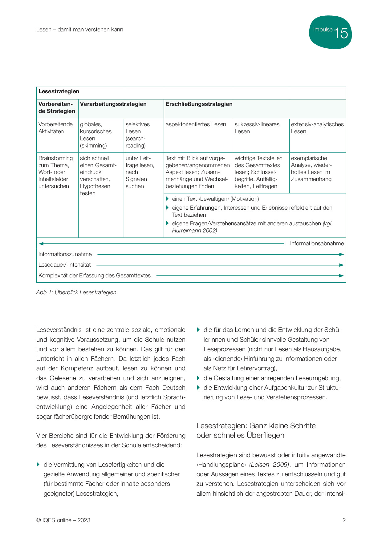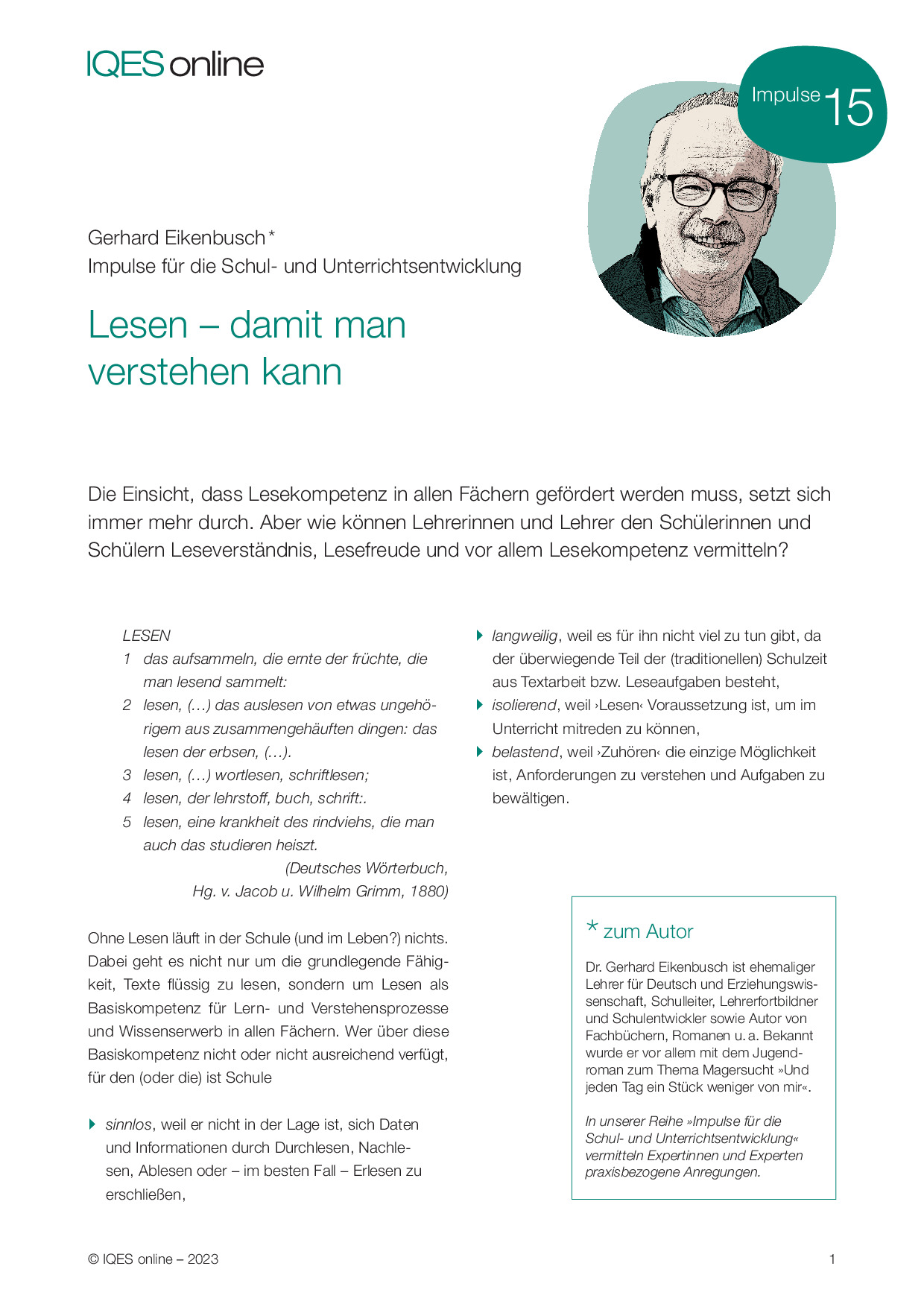 Die Einsicht, dass Lesekompetenz in allen Fächern gefördert werden muss, setzt sich immer mehr durch. Aber wie können Lehrerinnen und Lehrer den Schülerinnen und Schülern Leseverständnis, Lesefreude und vor allem Lesekompetenz vermitteln?
