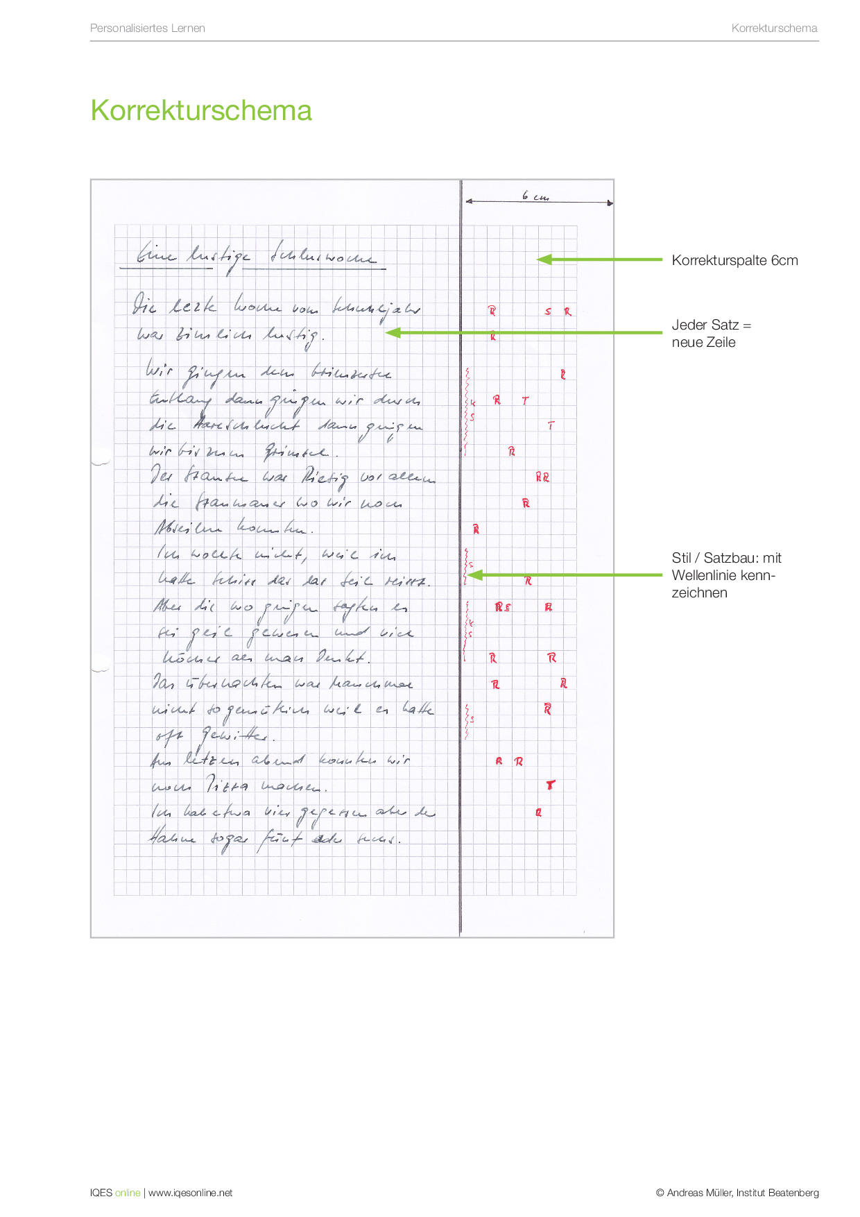 AV-Seite mit einem Beispieltext, die zeigt, wie ein Korrekturschema angewendet werden kann.